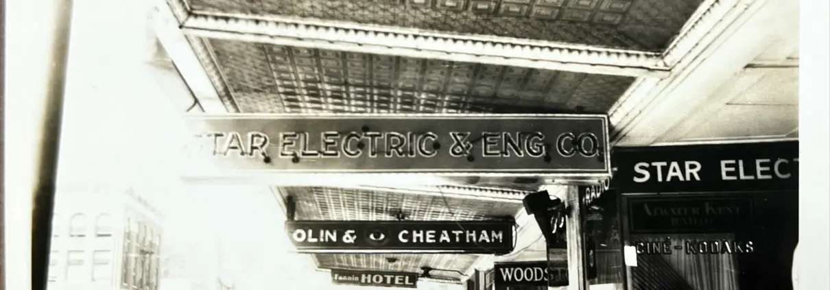 Photograph of early neon sign 1930-1940s – Star Electric and Eng. Co.