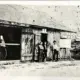 B&W photograph of signshop exterior with figures. Matteson Painted Outdoor Advertising