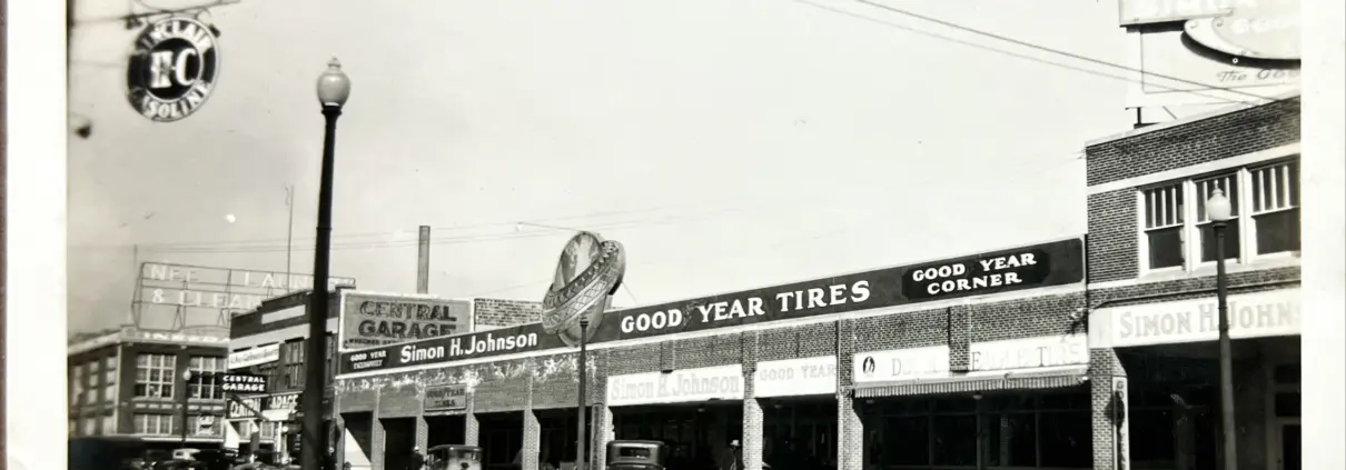 Photograph of early neon sign 1930-1940s – Good Year Tires.