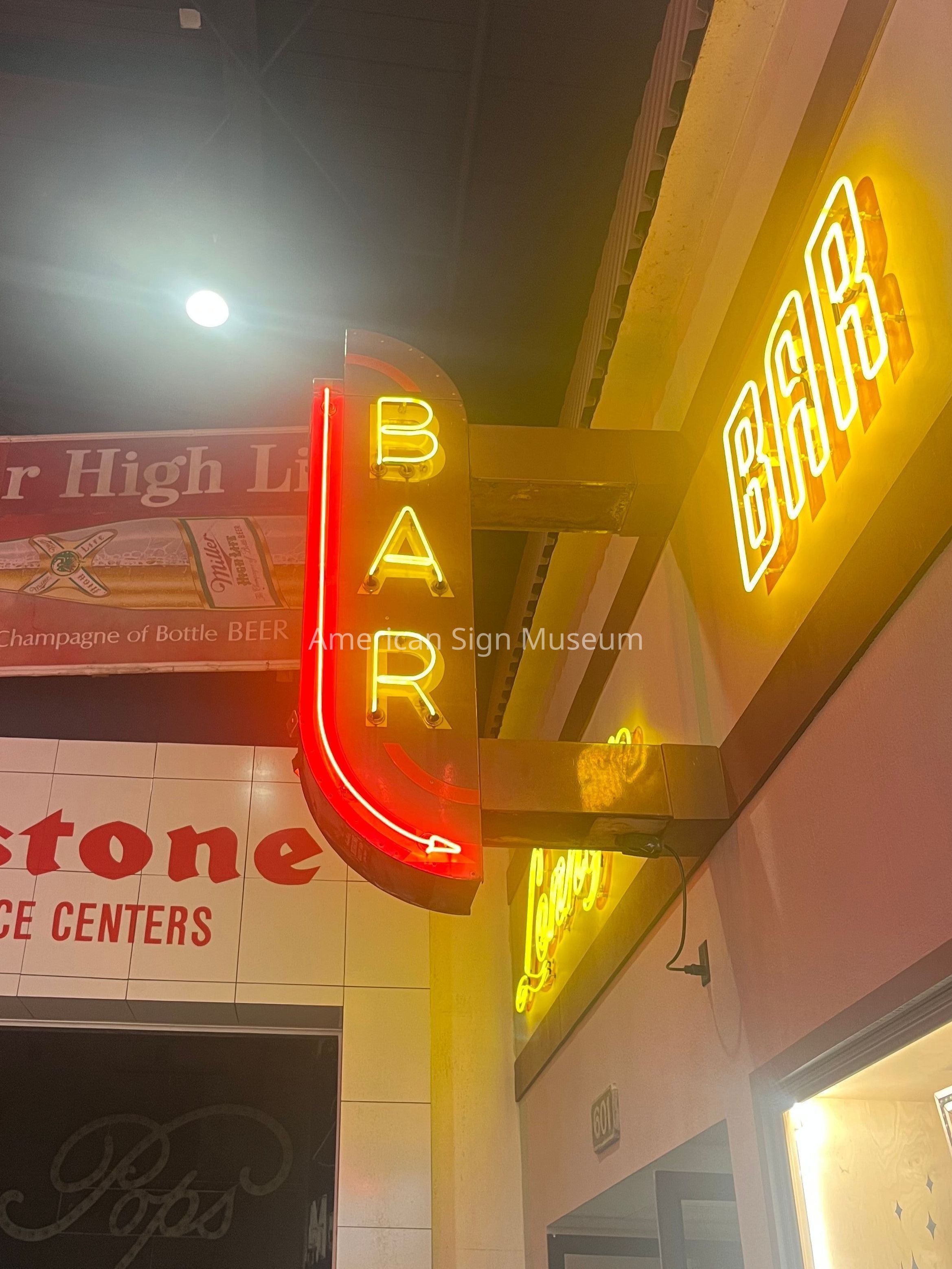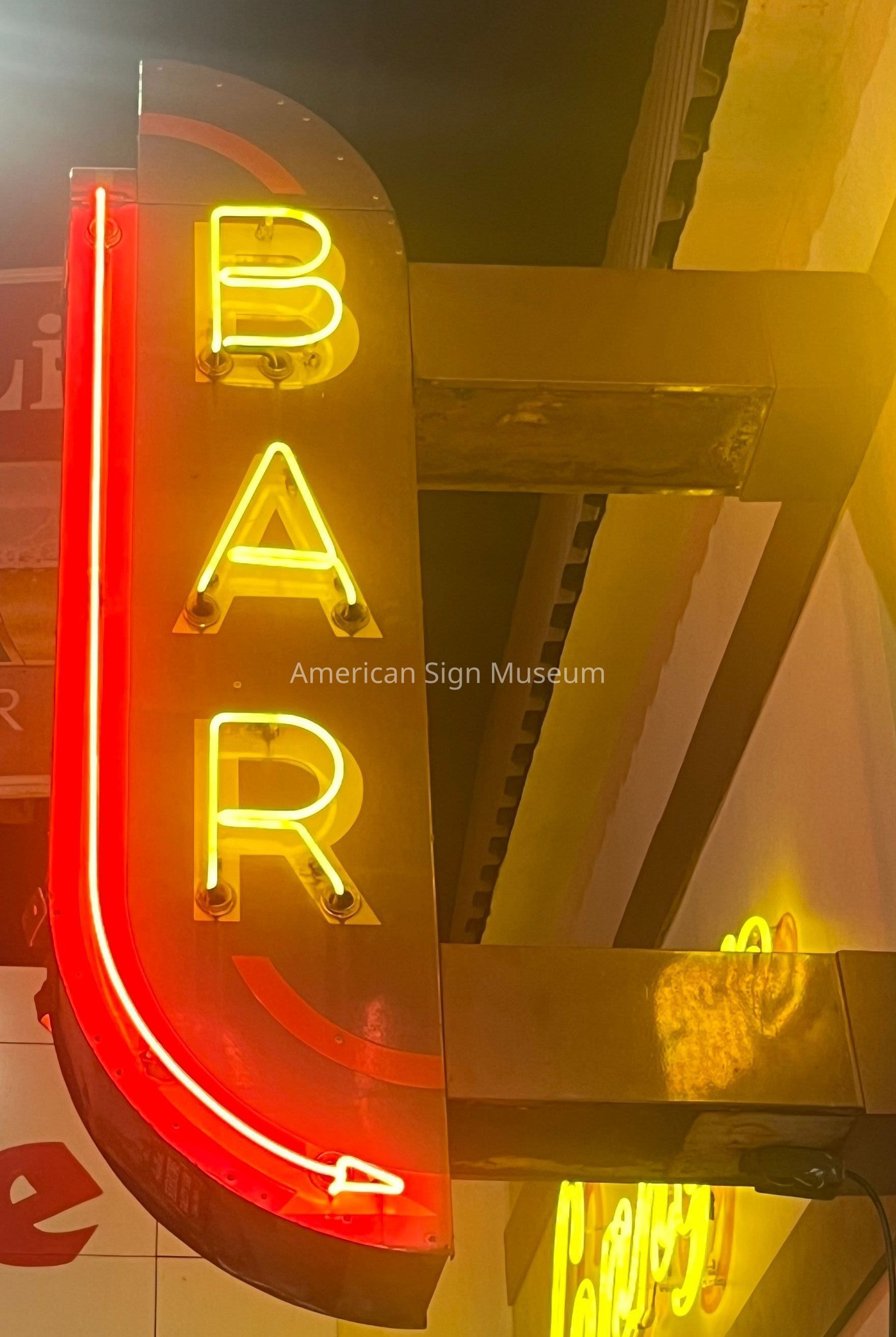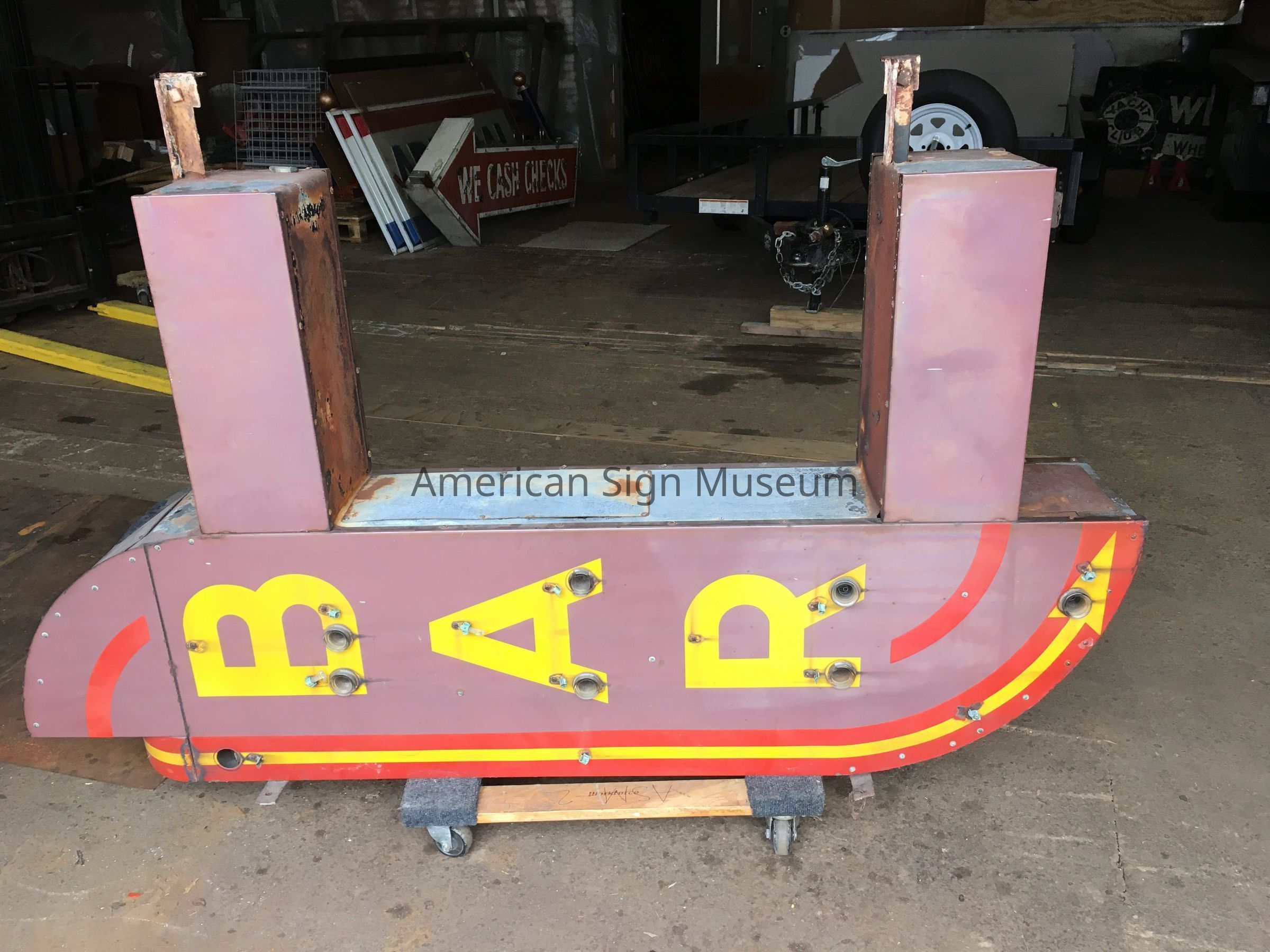 Double-faced porcelain enamel neon sign. It has a metal cabinet with porcelain enamel face.