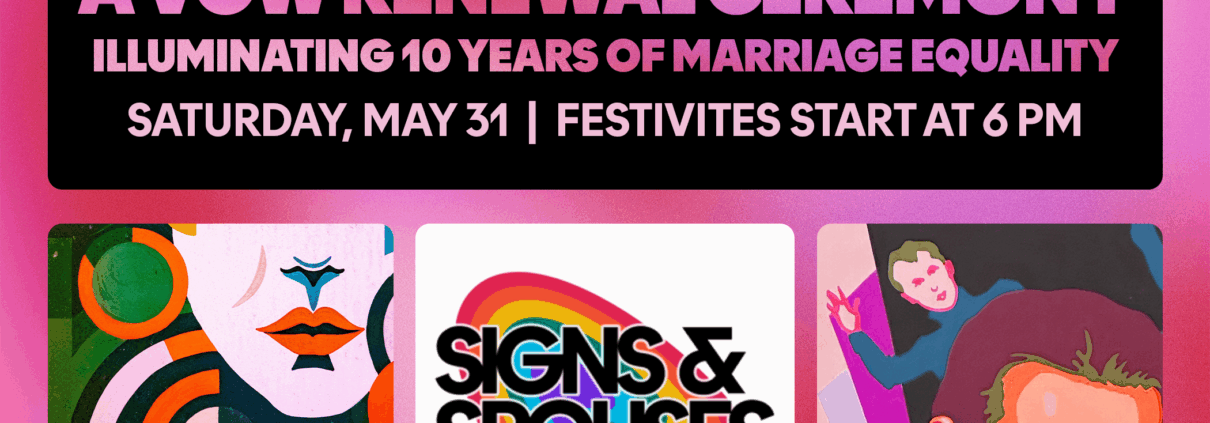 You are cordially invited to attend Signs & Spouses: A Sparkling Celebration of Marriage Equality. Inspired by the ASM’s exhibition Glow & Behold: Cincinnati’s Historic LGBTQ+ Bar Signs, 10% of net proceeds from Signs & Spouses will be gifted to the Ohio Lesbian Archives with gratitude for its efforts to preserve queer history.