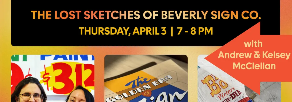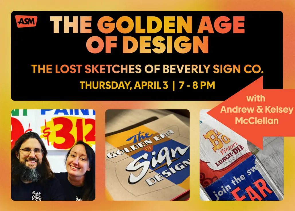 The preservation of two large 1920s-1930s wood panel signs, one now on display in the ASM’s collection, in the summer of 2022 in Chicago was just the start of a story that led to the publication of The Golden Era of Sign Design: The Rediscovered Drawings of Chicago’s Beverly Sign Co. Join Andrew and Kelsey McClellan as they share how their research led to a large collection of Beverly Sign Co. drawings that a young painter saved and preserved for our 50 years that make up this new publication.